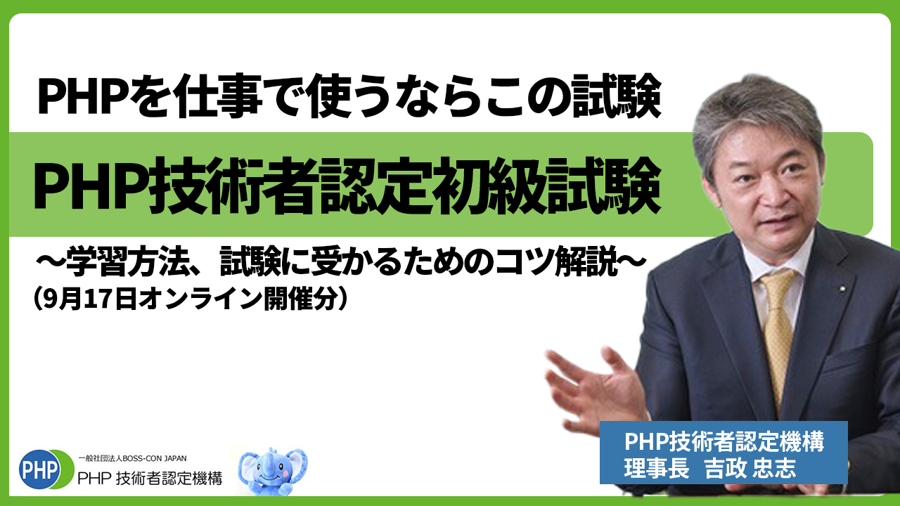 そして、より実践的なスキルを学ぶ指針である、PHP技術者認定上級試験を受験される方も多くなりました。そこで合格を目指す方を対象に本セミナーの動画を公開しました。
