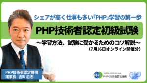 学びやすく、仕事も多いPHPを学ぶ方も多いこともあり、PHPの基礎技術の学習指針でもある、PHP技術者認定初級試験に興味がある方、合格を目指す方を対象に本セミナーを開催することに致しました。