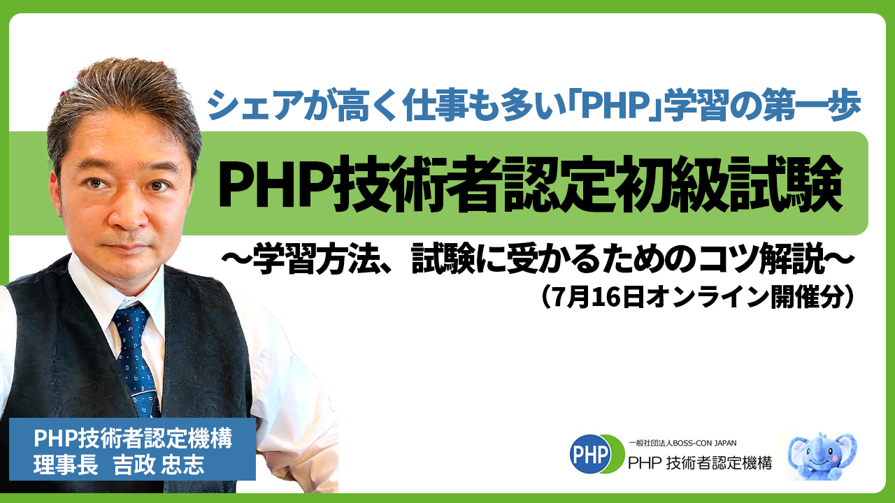 PHPを仕事で使うなら、まずはここを抑えておいてほしいを問う試験、