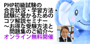 学びやすく、仕事も多いPHPを学ぶ方も多いこともあり、PHPの基礎技術の学習指針でもある、PHP技術者認定初級試験に興味がある方、合格を目指す方を対象に本セミナーを開催することに致しました。